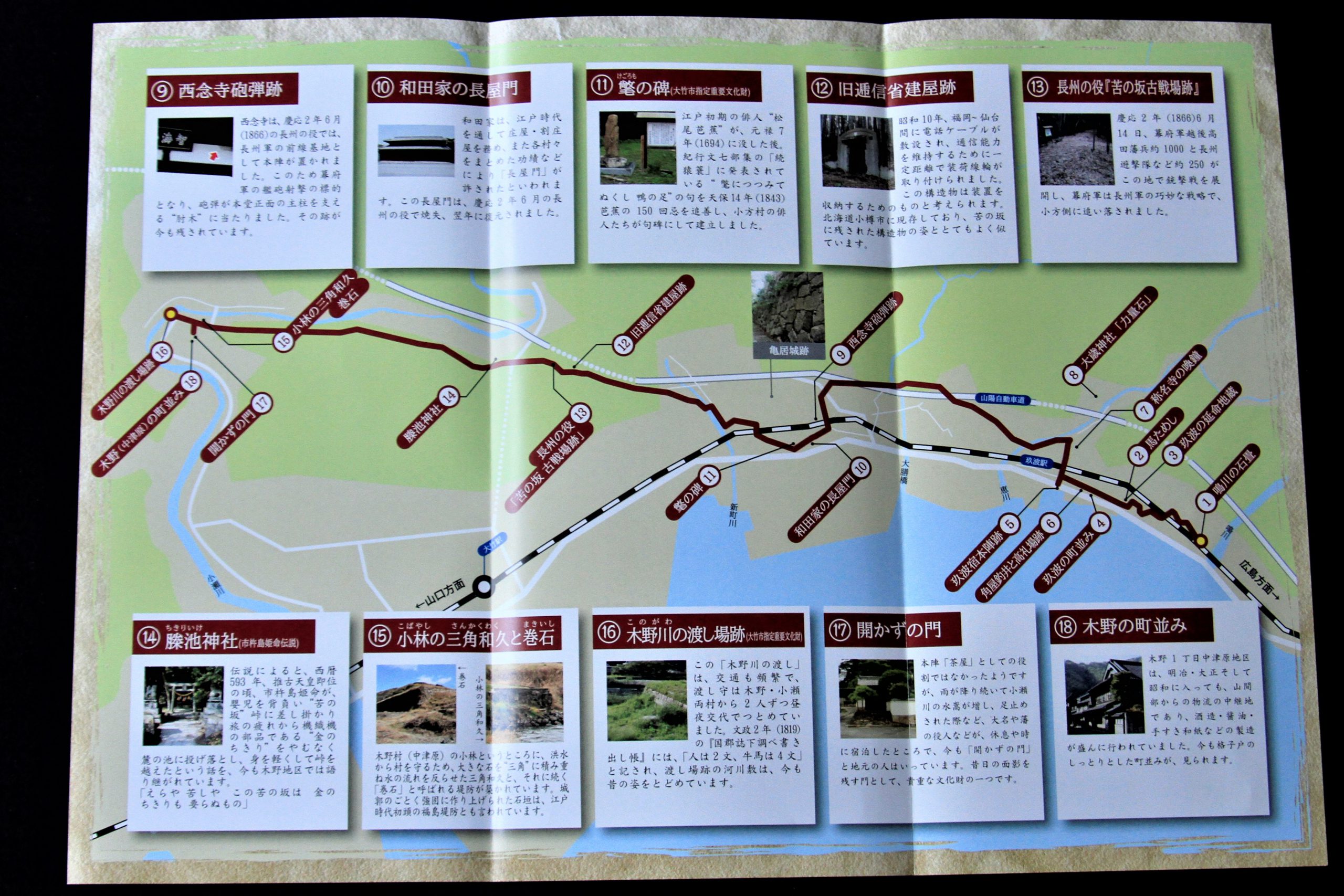 このリーフレットを手に、江戸期を彷彿する西国街道大竹路を歩き、大竹市内の史跡を散策してください。